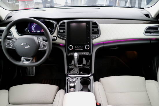 먼저, 눈길을 사로잡은 것은 태블릿PC처럼 큼지막하게 센터페시아 중앙에 자리 잡은 8.7인치 풀 터치스크린. 안드로이드 기반의 태블릿PC에 르노삼성이 SK텔레콤과 공동 개발한 S-링크(S-Link) 시스템을 통해 △전화 △문자 △음악 △내비게이션 등 여러 장치를 조작할 수 있다.