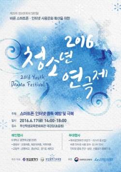 이날 개최되는 청소년연극제는 부산시가 바른 스마트폰·인터넷 사용 확산과 사회 공감대 형성을 위해 마련해 전국 청소년 연극경연 대회로 인터넷 중독, 악성리플 등 정보화 역기능 예방 극복을 주제로 1차 예선을 통과한 중학교 3팀, 고등학교 3팀 총 6개팀이 경연을 펼친다.