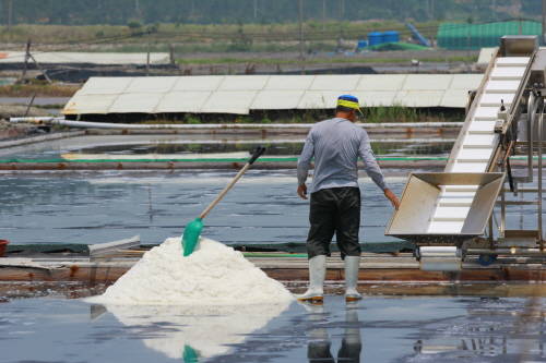 18일 전남 신안군 압해도를 출발해 지도읍과 증도면을 거쳐 따가운 햇볕 아래 염전에서 소금을 내는 염부의 손길이 바쁘다. 들녘에서 가을에 열매를 맺기 위한 꽃들이 방긋 웃는 시골의 풍경은 마냥 정겹기만 하다.