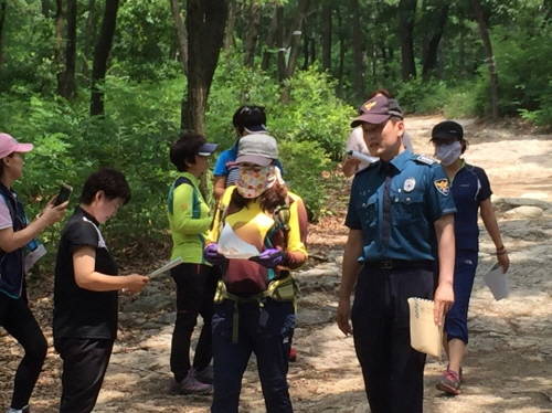 이날 와룡산을 방문한 여성 등산객들을 상대로 여성불안신고 '스마트 국민제보 앱' 전단지를 나눠주며 신고방법 등에 대해 홍보하고 등산 시 유의사항 등도 알려줬다.