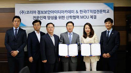[프라임경제] 한국IT직업전문학교 정보보안학과는 코리아정보보안IT아카데미와 산학협력을 위한 MOU를 체결했다고 22일 밝혔다.