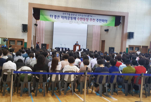 광산구 수완동 주민들은 22일 오후 3시 은빛초등학교 대강당에서 동장 추천 주민회의를 가졌다.