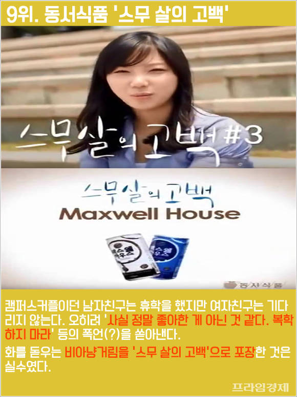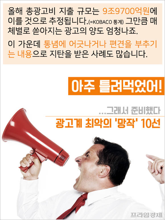 이를 바탕으로 누리꾼들이 선정한 광고계 최악의 '망작'(망한 작품) 10선을 추렸다.