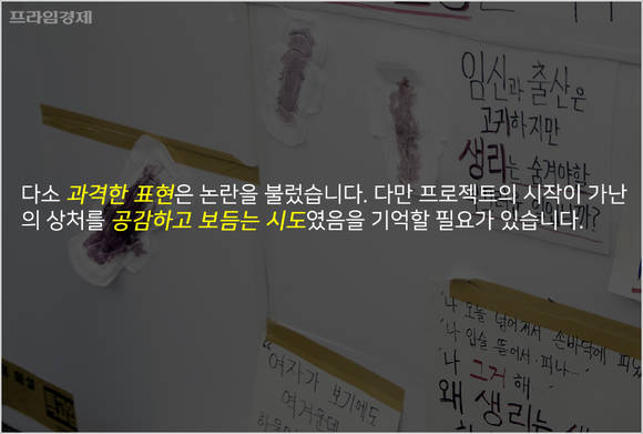 다소 과격하기까지 표현은 논란이 되기도 했습니다. 다만 프로젝트의 시작이 가난의 상처를 공감하고 보듬는 시도임을 기억할 필요가 있습니다.