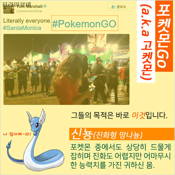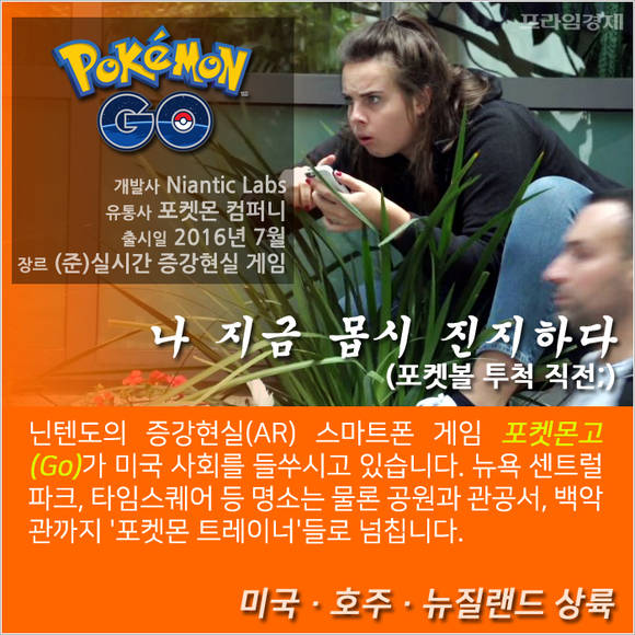 닌텐도의 증강현실(AR) 스마트폰 게임 '포켓몬고(Go)' 혹은 '고켓몬'이 미국 사회를 들쑤시고 있습니다. 뉴욕 센트럴파크, 타임스퀘어 등 명소는 물론 공원과 관공서까지 '포켓몬 트레이너'들로 넘칩니다.