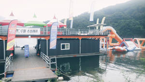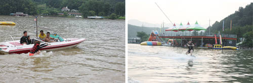 이곳에 도착하면 제일 먼저 보이는 것은 여러 가지 물놀이 기구와 먼저 도착해 웨이크보드나 수상스키를 즐기는 이들입니다. 특히 패키지로 묶인 물놀이 기구는 꼭 나중에 한 번 타보고 싶다는 생각이 들 정도로 재미있어 보였습니다.