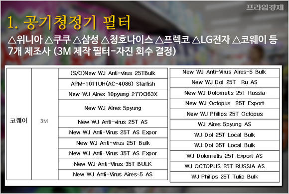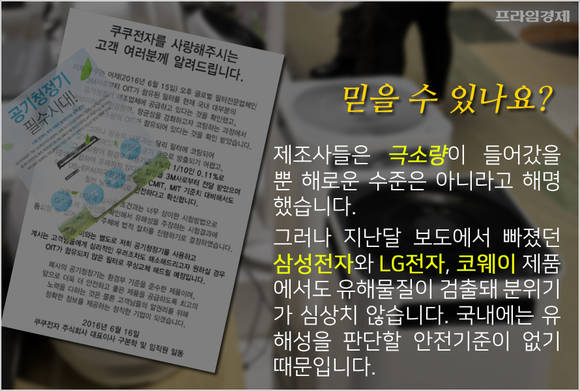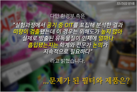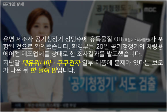 제조사들은 필터에 극소량이 들어갔을 뿐 해로운 수준은 아니라고 해명했지만 지난달 보도 내용에서 빠졌던 삼성전자와 LG전자, 코웨이 등도 OTI 검출 명단에 오른 만큼 분위기가 심상치 않습니다.