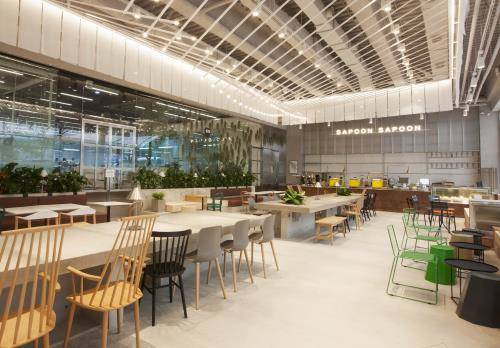 카페 사푼사푼은 인삼밭과 자연을 모티브로 한 자연친화적인 분위기로, 서울 강남구 대치동 KT&G타워 1층에 자리를 잡았다.