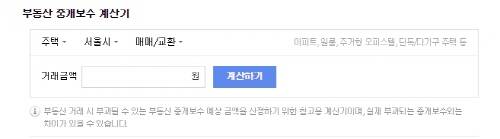 다행히도 집주인이 너그럽게 이해해준 덕분에 먼저 방에 들어가고 월요일 오전까지 지불하기로 했어. 이제 남은 건 공인중개수수료인데, 사실 공인중개사가 바가지 씌울까 봐 두려워 인터넷 중개수수료 계산기로 미리 검색하고 왔어.