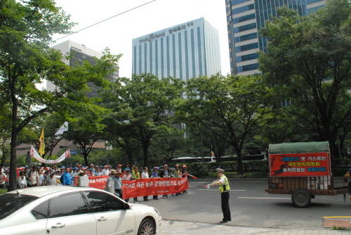 농민들은 이번 집회에서 "FTA로 죽인 농촌을 다시 한 번 죽이려는 것" "축산농가 죽이는 김영란법 반대" 등 구호를 외쳤다. 산업은행 본점 주변에서 연좌 시위 진행 외에도 여의도역 인근 거리 행진 등을 통해 시민들에게 문제점을 소개하고 법 개정을 호소했다.