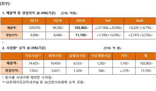 이는 지난 2011년 1분기 이후 사상 최고치이며, 상반기 누적(1조9643억원)으로도 반기사상 최대실적이다. 아울러 매출은 유가상승에 따른 휘발유·경유 등 석유제품 가격상승으로 이전분기 대비 8.7% 증가한 10조2802억원을 기록했다.