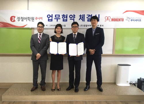 [프라임경제] 정철어학원주니어(대표 강귀미)는 모겐토(대표 서철원)와 지난 21일 정철어학원주니어 본사에서 업무 협약식을 가졌다.