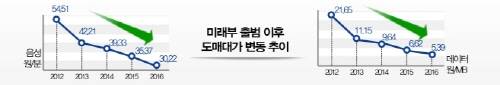 특히 알뜰폰 도매대가는 전년대비 음성이 분당 35.37원에서 30.22원으로 14.6%, 데이터는 분당 6.62원에서 5.39원으로 18.6% 씩 내렸다. 미래부는 하반기 대용량 데이터 구매시 할인제도 도입도 검토할 예정이다.