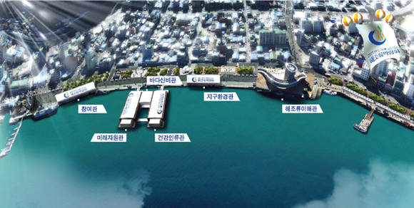 '바다신비관'은 해상에 전시관을 설치, 바닷물을 쏴 만든 360도 워터스크린 입체 영상을 이용해 신비로운 바다 속 해조류를 소재로 관람객들의 예술적 감동을 선사한다.