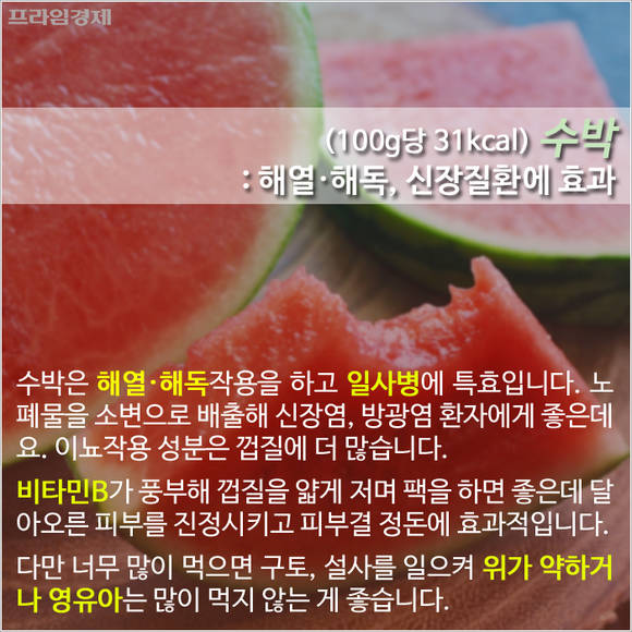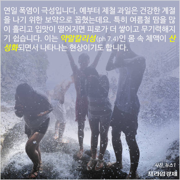 [프라임경제] 연일 폭염이 극성입니다. 예부터 제철 과일은 건강하게 계절을 나는 보약으로 꼽혔는데요. 특히 여름에는 땀을 많이 흘리고 입맛이 떨어져 잘 먹지 못할 경우 피로가 더 쌓이고 무기력해지기 쉽습니다. 이는 약알칼리성(ph7.4)인 몸 속 체액이 산성화되면서 나타나는 현상입니다.