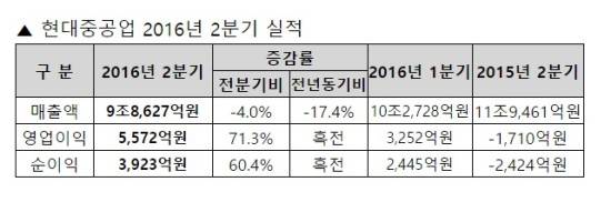 이로써 현대중공업은 지난 1분기에 이어 연속흑자를 달성했으며, 상반기 누계로는 매출 20조1355억원, 영업이익 8824억원을 거뒀다.