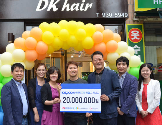 [프라임경제] 한국전력(사장 조환익)은 임직원들의 급여끝전 나눔으로 모금된 기금으로 창업한 '희망무지개 점포' 15호점을 개업했다.