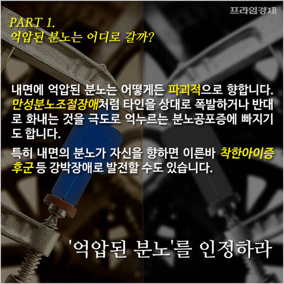 [프라임경제] 분노를 자각하는 것이 얼마나 중요한지 모른 채 억누르기만 한 사람은 화내는 것 자체에 공포를 느끼거나 심하면 인간관계를 망치고 스스로를 해칠 수도 있습니다.