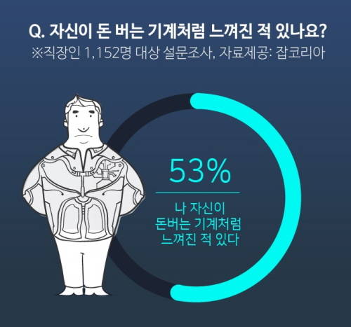 [프라임경제] 직장인 2명 중 1명은 자신이 돈 버는 기계처럼 느껴진 적이 있는 것으로 조사됐다.