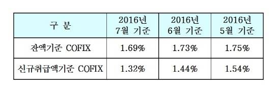 전국은행연합회는 16일 올해 7월 기준 코픽스(COFIX·자금조달비용지수)를 공시했다.