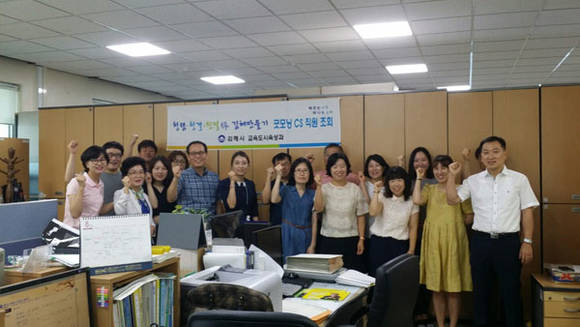 [프라임경제] 김해시 교육도시육성과는 '깨끗한 시정, 하나 된 김해만들기 - 청렴, 청결, 친절 3대 범시민운동' 실천의 일환으로, 17일 업무시작 전 금융기관 CS전문가를 초빙해 '굿모닝 CS 직원 조회'를 실시했다.