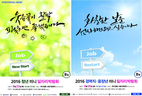 [프라임경제] 부산시가 청년층 일자리 창출과 고용촉진을 위해 '부산 일자리 르네상스 프로젝트'와 연계한 2016년 청년·중장년 미니일자리박람회를 25일, 26일 오후 2시부터 오후 5시까지 부산경총 고용지원센터 13층에서 개최한다.