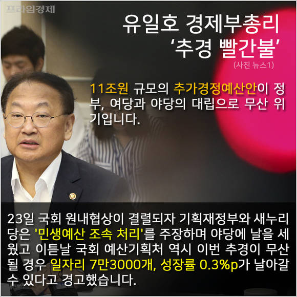 [프라임경제] 11조원 규모의 추가경정예산안이 국회 통과 과정에서 무산 위기에 몰렸습니다.