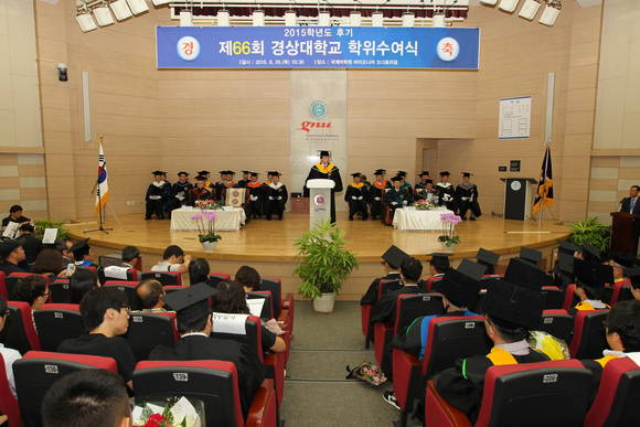 [프라임경제] 국립 경상대학교(총장 이상경)는 25일 국제어학원 파이어니어 오디토리엄에서 2015학년도(제66회) 후기 학위수여식을 개최했다.