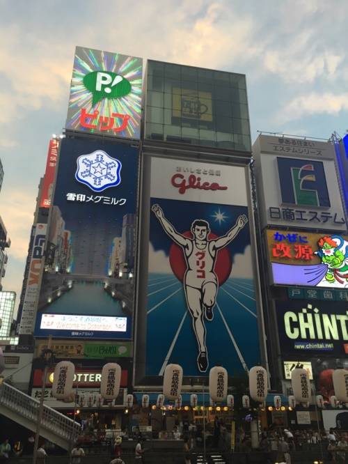 지금 서 있는 글리코상은 6대 간판인데요. 6대 간판을 올릴 때는 TV에서 생중계될 정도로 오사카에 있어 글리코상은 없어서 안 될 존재입니다.