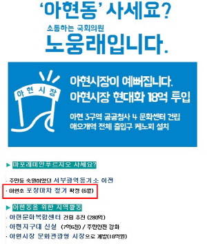 실제로 당시 20대 총선 서울 마포구 갑에 출마한 더불어민주당 노웅래 의원이 아현포차 인근 아파트 주민들을 대상으로 한 선거 공약에는 '아현포차 철거 확정(6월)'이라고 명시돼 있습니다.