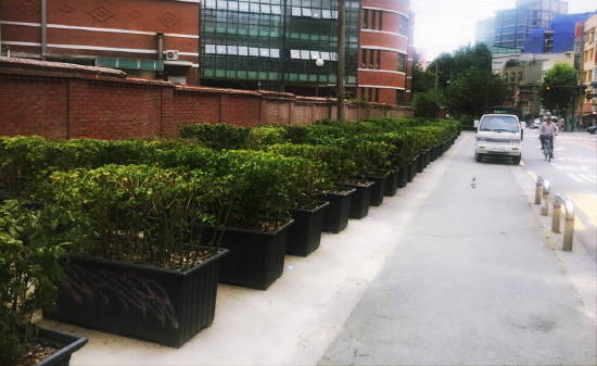 강압적인 철거 외에도 눈살을 찌푸리게 하는 점은 몇 가지 더 있습니다. 과거처럼 리어카를 끌어다 장사를 이어갈 것이라고 우려했던 걸까요. 현재 철거된 아현포차 공터에는 성인 남성 둘이서도 옮기기 힘들어 보이는 큰 화분들이 '단호하게' 놓여져 있습니다.