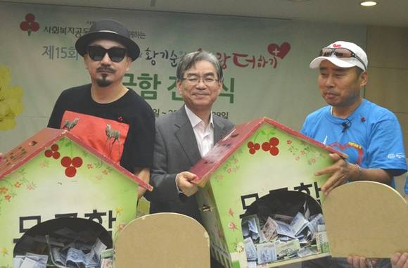 [프라임경제] 가수 박상민과 개그맨 황기순의 사랑더하기 모금함 전달식이 29일 오전 11시 사회복지공동모금회 6층에서 진행됐다.