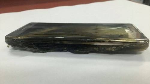 지난 25일엔 한 누리꾼이 배터리 폭발로 그을린 갤럭시노트7 골드플래티늄을 카카오스토리에 올렸다. 이 누리꾼은 "사진은 충전 중 폭발한 지인의 갤럭시노트 7"이라며 "혹시 모르니 꼭 정품 충전기를 사용하고, 충전할 때는 몸과 먼 곳에 두라"고 작성했다.