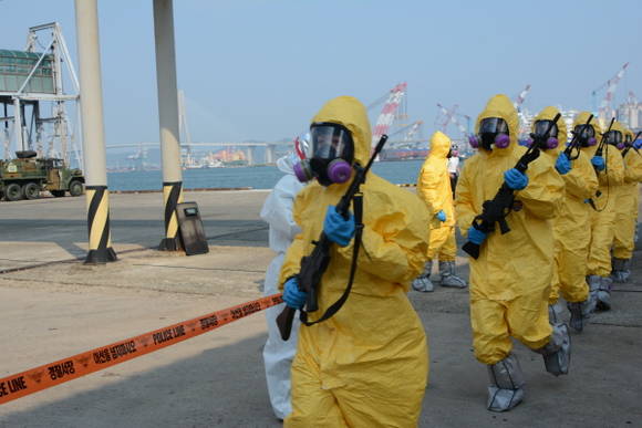 부산연안여객터미널에 불상의 테러범이 독극물로 추정되는 백색가루를 살포하고 건물에 난입, 인질테러를 벌이는 가상 시나리오를 토대로 보건·소방 제독활동 등 유관기관별 조치와 경찰특공대의 테러범 진압·폭발물 제거 순으로 진행됐다.