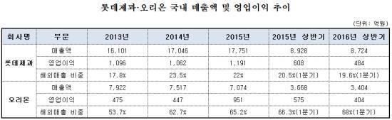 2일 금융감독원 전자공시시스템에 따르면 별도재무제표 기준 롯데제과의 매출액은 2013년 1조6101억원에서 지난해 1조7751억원으로 매해 성장세를 기록해왔다.