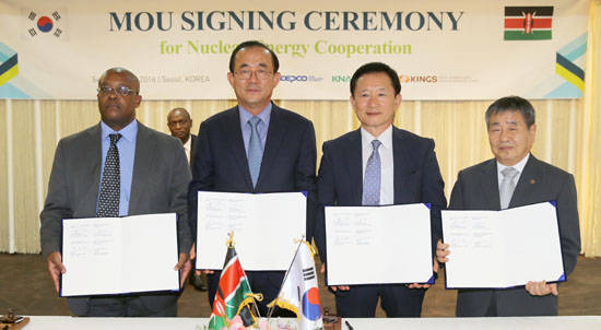 [프라임경제] 한국전력(사장 조환익)은 지난 2일 서울 코리아나 호텔에서 케냐 원자력위원회와 원자력 전반 상호협력을 위한 업무협약(MOU)을 체결했다.