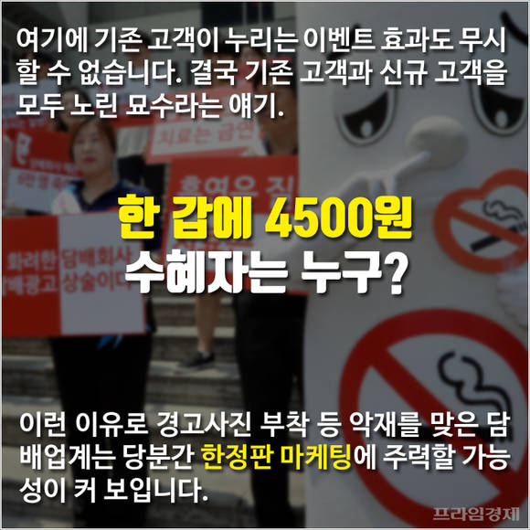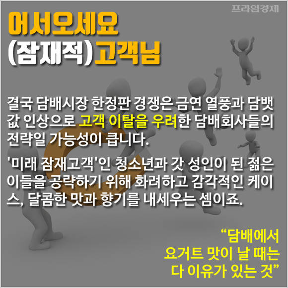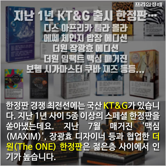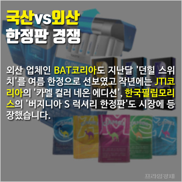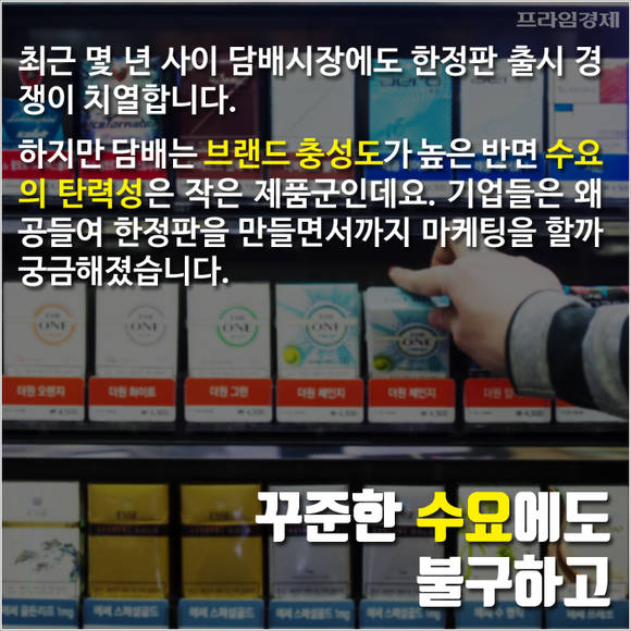 최근 몇 년 사이 담배시장에도 한정판 출시 경쟁이 치열합니다. 하지만 담배는 브랜드 충성도가 높은 반면 수요의 탄력성은 작은 제품군 중 하나입니다.
