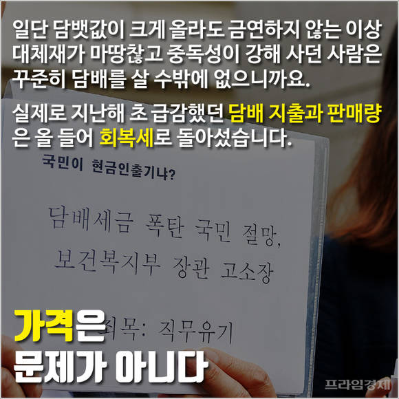 일단 담뱃값이 크게 올랐지만 금연하지 않는 이상 대체재가 마땅찮고 중독성이 강해 사던 사람은 꾸준히 살 수밖에 없으니까요. 실제로 지난해 초 급감했던 담배 지출은 올 들어 회복세로 돌아섰습니다.