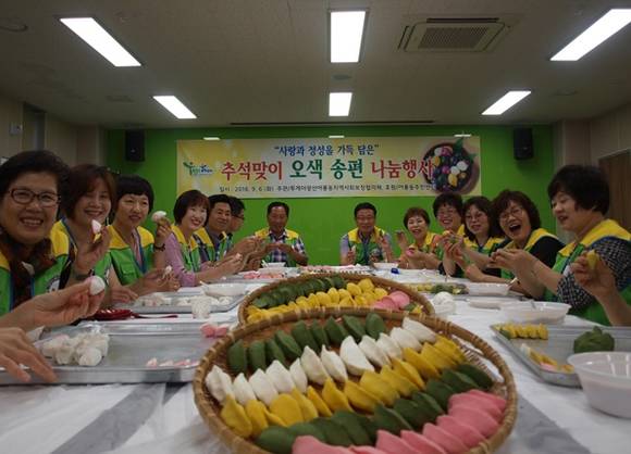 송정1동 지사협은 6일과 7일 이틀 동안 어르신 50명을 초청해 점심을 함께 하는 행복한 밥상과 송편을 전달하는 '한가위 情나눔' 행사를 전개했다.