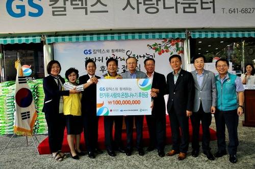 올해로 12년째 소외이웃에게 한가위 성품을 전달한 GS칼텍스는 지난 8일 여수시 연등동에 위치한 무료급식소 'GS칼텍스 사랑나눔터'에서 'GS칼텍스와 함께하는 한가위 사랑의 온정나누기' 행사를 주철현 여수시장, 박정채 여수시의회 의장 등 여수시 관계자, 우종완 여수시지역사회보장협의체 공동위원장 등 사회복지단체 관계자 50여명, GS칼텍스 김병열 사장과 여수공장 봉사자 40여명 등 총 100여명의 각계각층 인사가 참석한 가운데 개최했다.