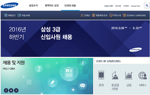 9일 삼성에 따르면 이날부터 20일 오후 5시까지 그룹 채용사이트 '삼성커리어스(www.careers.samsung.co.kr)'를 통해 3급 대졸 신입사원 원서를 접수받는다.