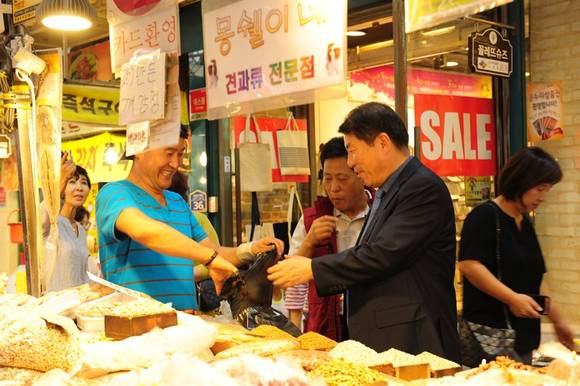 이어 제수용품을 사러 나온 시민들과 대화를 나누며 애로사항을 청취하고, 재래시장 이용과 물가안정에 적극 협조해 줄 것을 부탁했다.