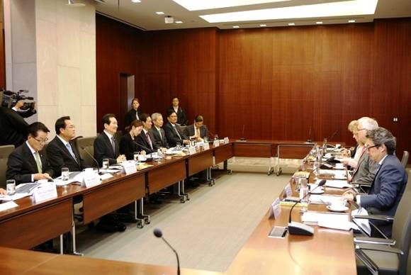 [프라임경제] 정세균 국회의장은 지난 13일 오전 8시 워싱턴에서 미국의 주요 싱크탱크인 CSIS(Center for Strategic & International Studies, 전략국제문제연구소), CFR(Council on Foreign Relations, 미 외교협회), 브루킹스연구소 소속 한반도 전문가와 간담회를 가졌다.