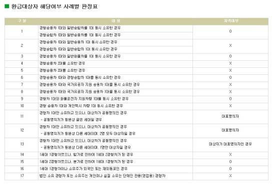 환급 대상은 승용차와 승합차를 가리지 않고 배기량 1000㏄ 미만의 경형차를 소유하고 있는 차주인입니다. 세대 기준으로 한 집 당 경차 1대 혜택이 기본입니다.