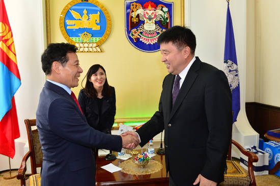 윤장현 광주광역시장은 현지시간으로 22일 오전 11시 몽골 울란바토르시청 접견실에서 바트벌드 손두이(Batbold Sundui) 울란바토르 시장과 만나 우호협력 협정을 체결했다.