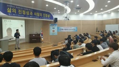 이 대표는 본인이 서울대 꼴지로 살아가며 경험한 철학과 그만의 생활방식을 바탕으로 인생탐구와 내 인생의 대입을 통해 청년층 인성예절과 경영자가 원하는 인재가 되는 방법 등을 전달했다.