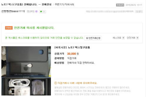 그중에서도 최근 온라인 중고마켓에 본체를 뺀 갤럭시노트7 박스세트가 매물로 등장하면서 유통점의 횡령 논란까지 불거졌다. 그럼에도 이통사 측은 "제조사에서 관리할 문제"라며 사실상 방관하고 있다.