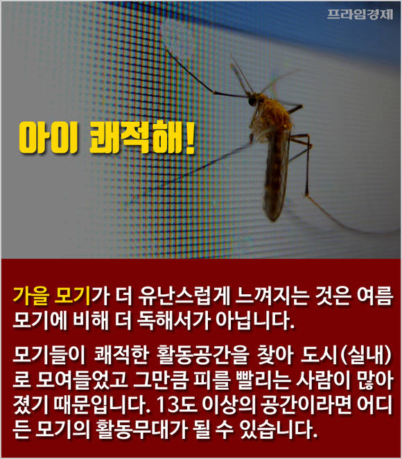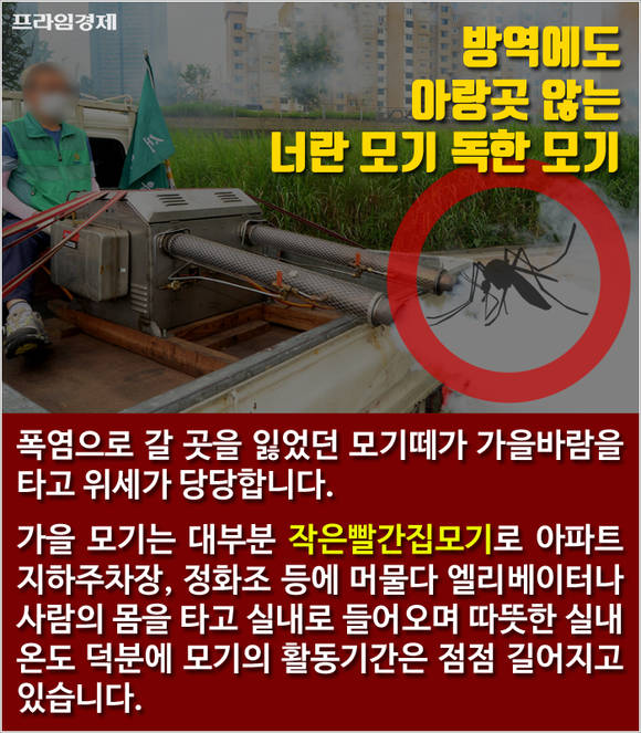 [프라임경제] 올 여름 폭염으로 갈 곳을 잃었던 모기떼가 가을바람을 타고 위세를 떨치고 있습니다.