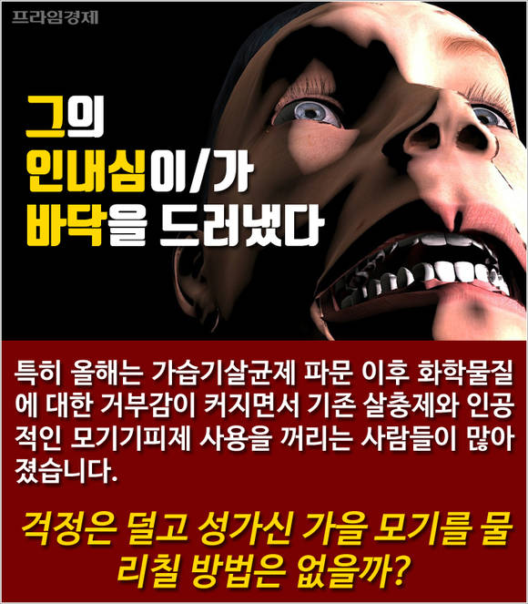 올해는 특히 가습기살균제 파문 이후 화학물질에 대한 거부감이 커지면서 기존 살충제와 인공적인 모기기피제 사용을 꺼리는 사람들이 많아졌습니다. 걱정은 덜면서 성가신 가을 모기를 물리칠 방법은 없을까요?