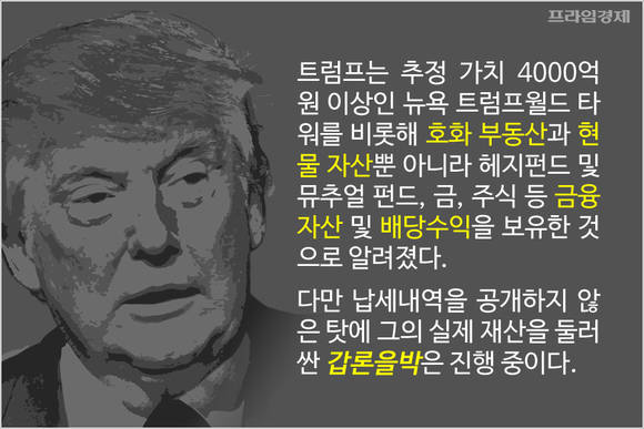 [프라임경제] 4000억원 상당의 가치가 있다는 뉴욕 트럼프월드 타워와 플로리다 팜비치 컨트리클럽 및 제트기, 고급 콘도 등등…. 이는 미국 공화당 대선 후보 도널드 트럼프의 재산목록 중 일부입니다.